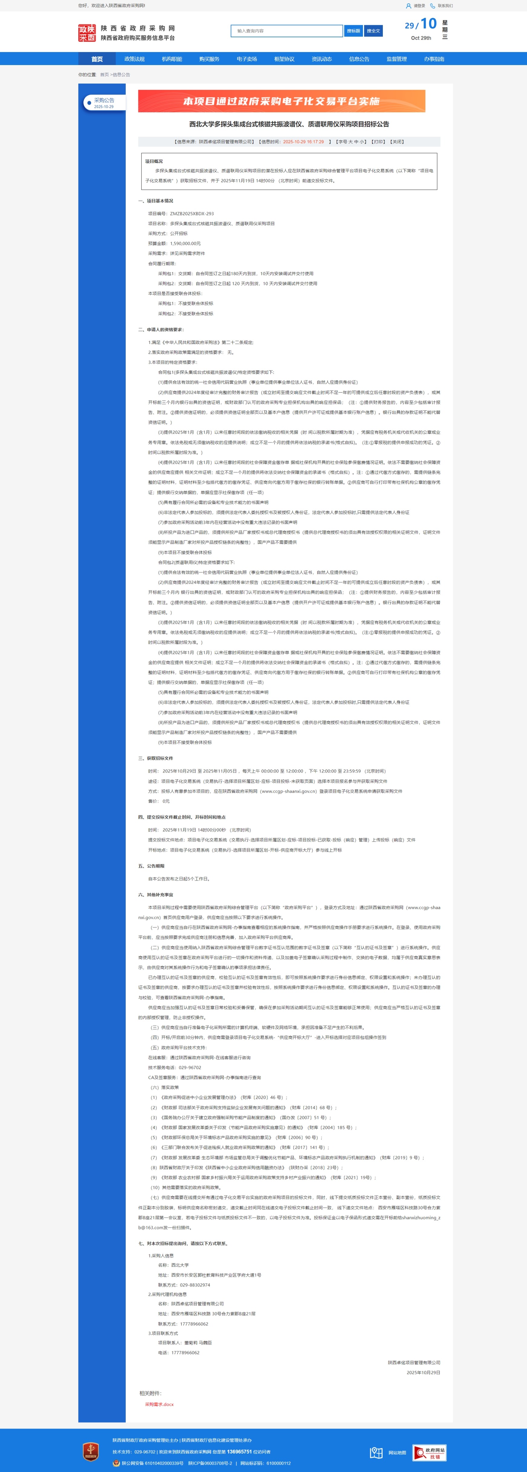 云博app官方在线入口多探头集成台式核磁共振波谱仪、质谱联用仪采购项目招标公告 作者:国有资产管理处 编辑:国有资产管理处 时间:2025-10-29 原公告链接:https://www.ccgp-shaanxi.gov.cn/freecms/site/shaanxi/ggxx/info/2025/8a69c54f99f77a8f019a2efec46e4a64.html?noticeType=001011¬iceId=e7208489-b4a1-11f0-8063-08c0eb20c666