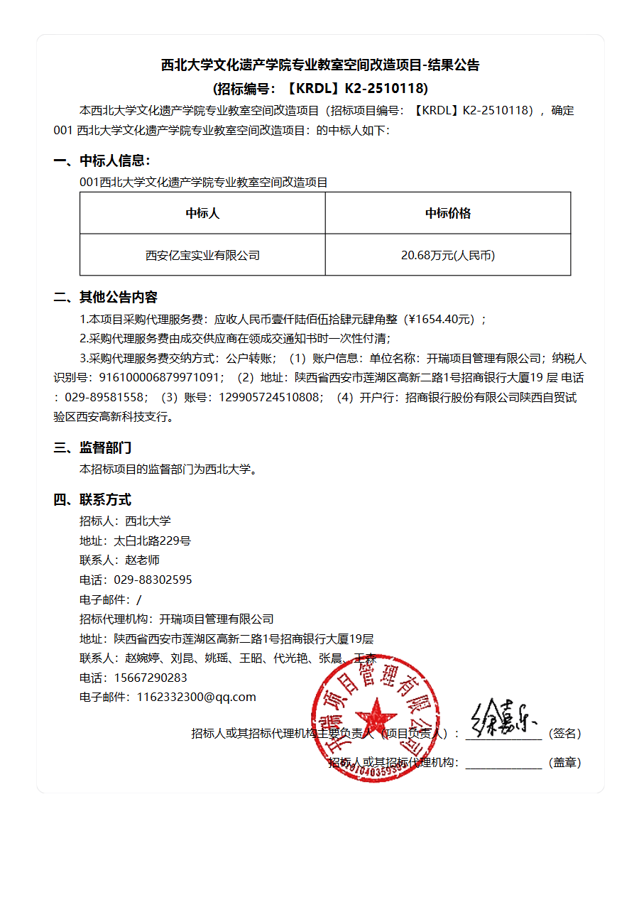 云博app官方在线入口文化遗产学院专业教室空间改造项目结果公告