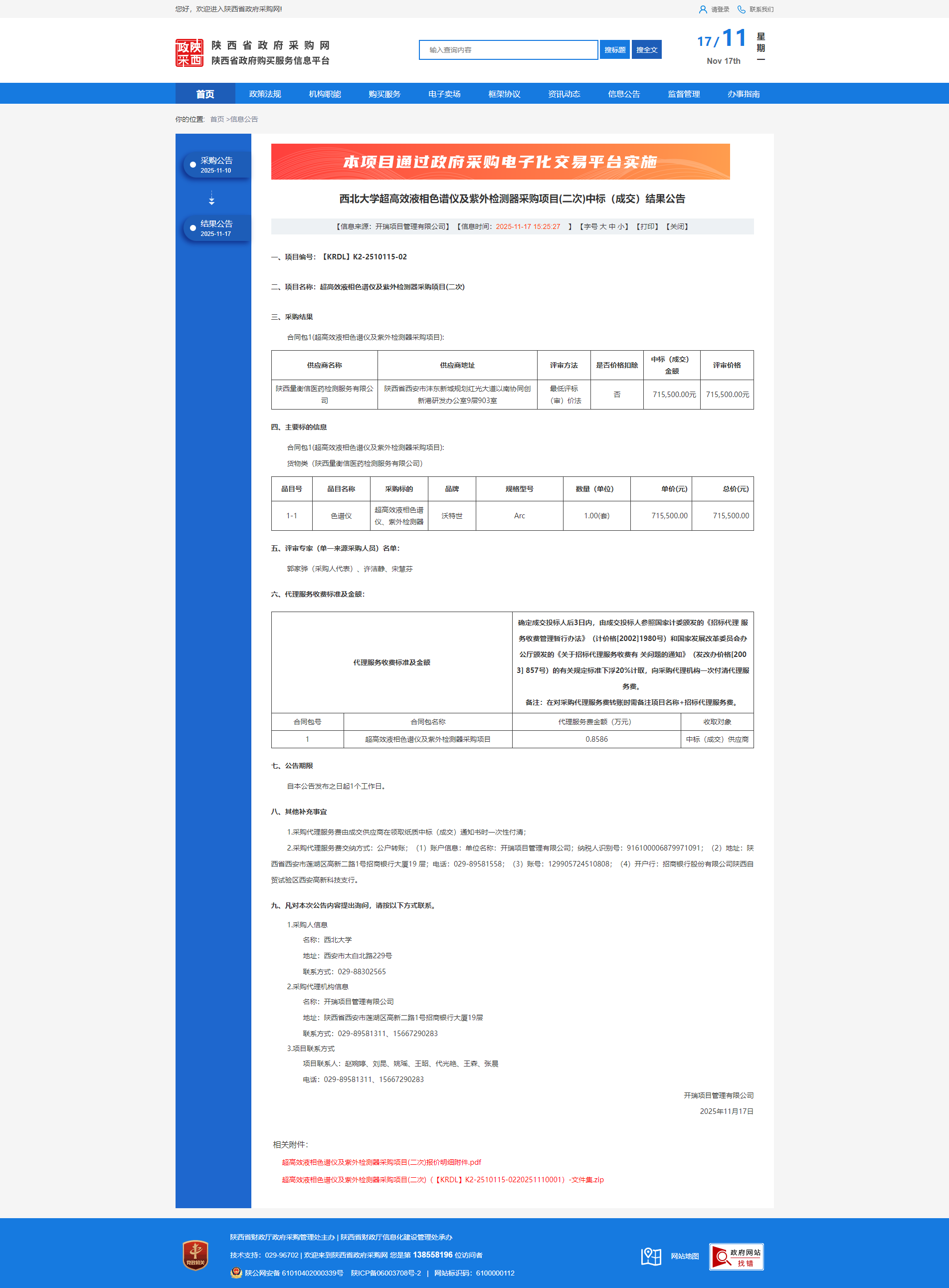 云博app官方在线入口超高效液相色谱仪及紫外检测器采购项目(二次)中标(成交)结果公告