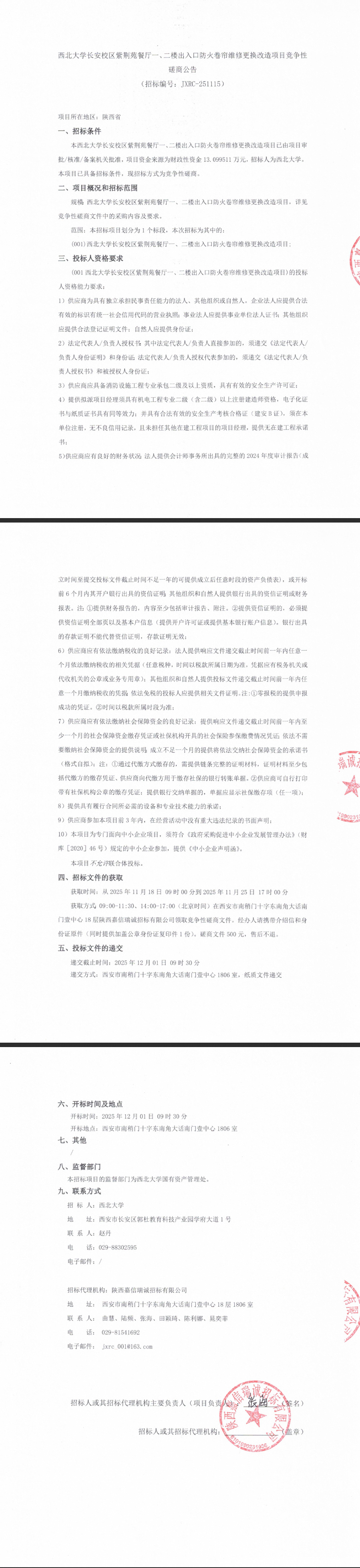 云博app官方在线入口长安校区紫荆苑餐厅一、二楼出入口防火卷帘维修更换改造项目竞争性磋商公告
