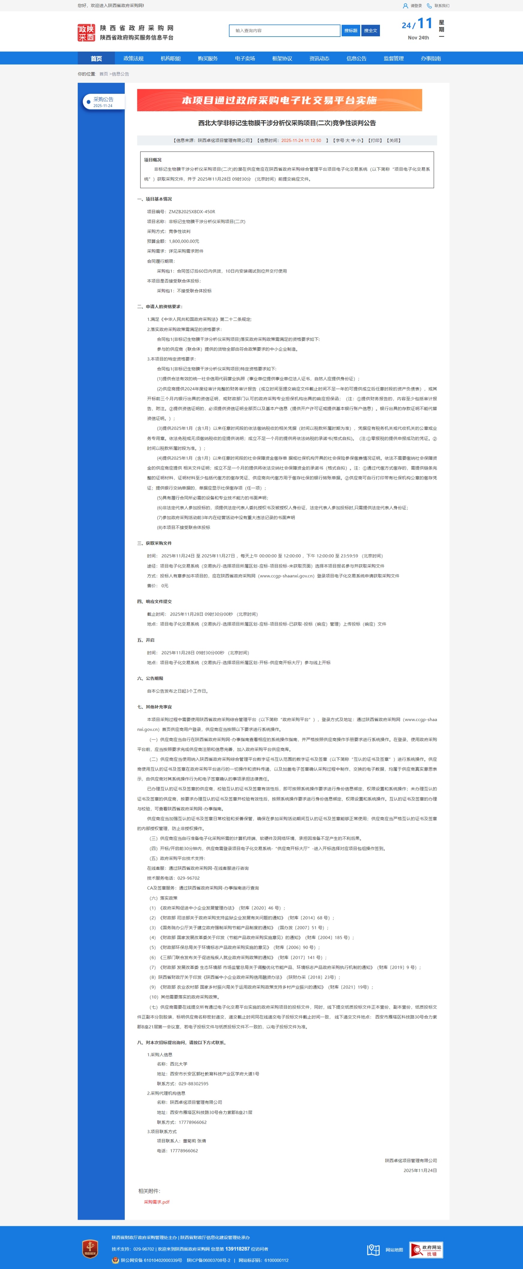云博app官方在线入口非标记生物膜干涉分析仪采购项目(二次)竞争性谈判公告 作者: 编辑:国有资产管理处 时间:2025-11-24 原公告链接:https://www.ccgp-shaanxi.gov.cn/freecms/site/shaanxi/ggxx/info/2025/8a69c5539a636e42019ab3afd37915be.html?noticeType=001013¬iceId=b2c05b7d-c8e5-11f0-8063-08c0eb20c666