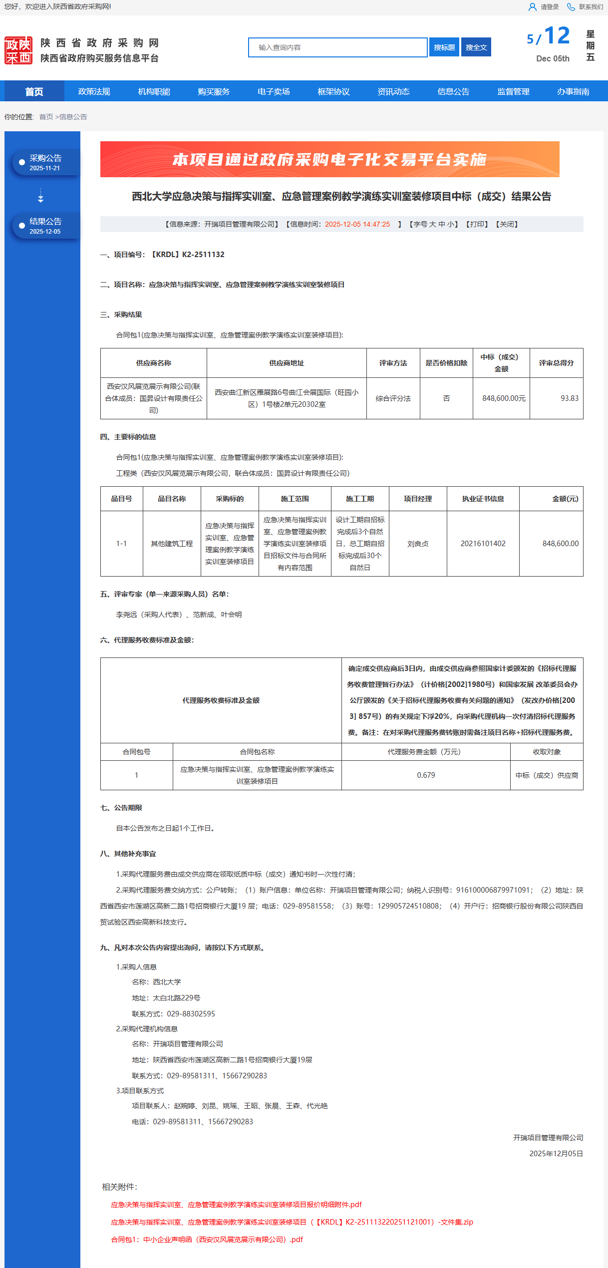 云博app官方在线入口应急决策与指挥实训室、应急管理案例教学演练实训室装修项目中标(成交)结果公告