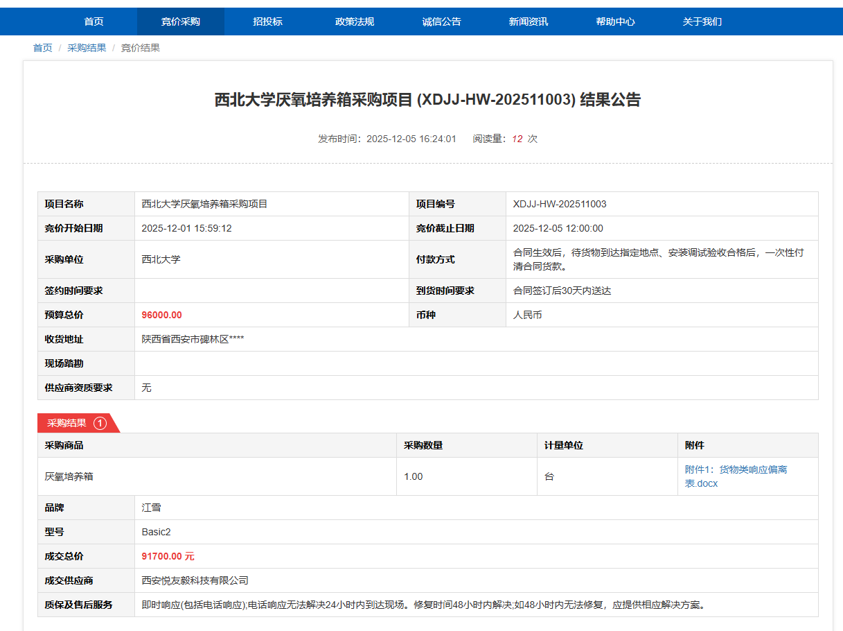 云博app官方在线入口荧光分光光度计采购项目(XDJJ-HW-202511002)竞价采购公告