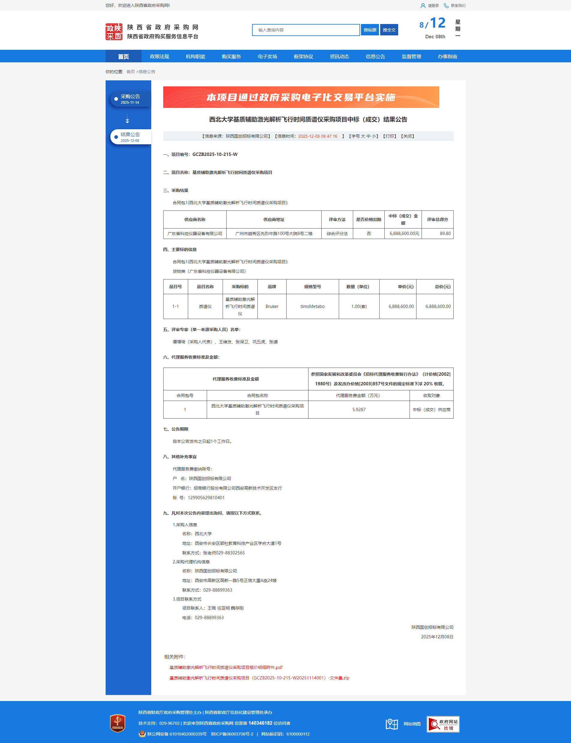 云博app官方在线入口基质辅助激光解析飞行时间质谱仪采购项目中标(成交)结果公告