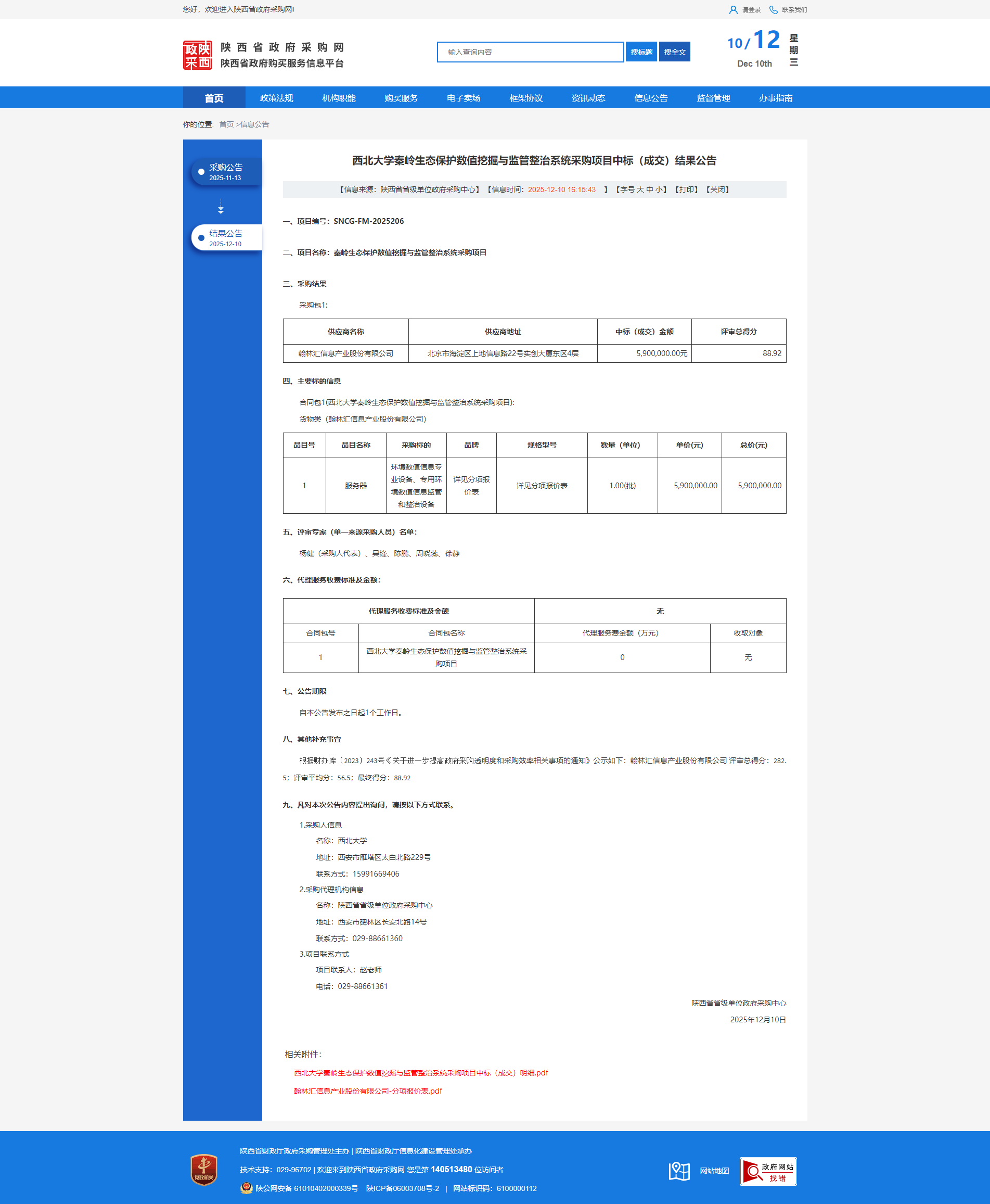 云博app官方在线入口秦岭生态保护数值挖掘与监管整治系统采购项目中标(成交)结果公告