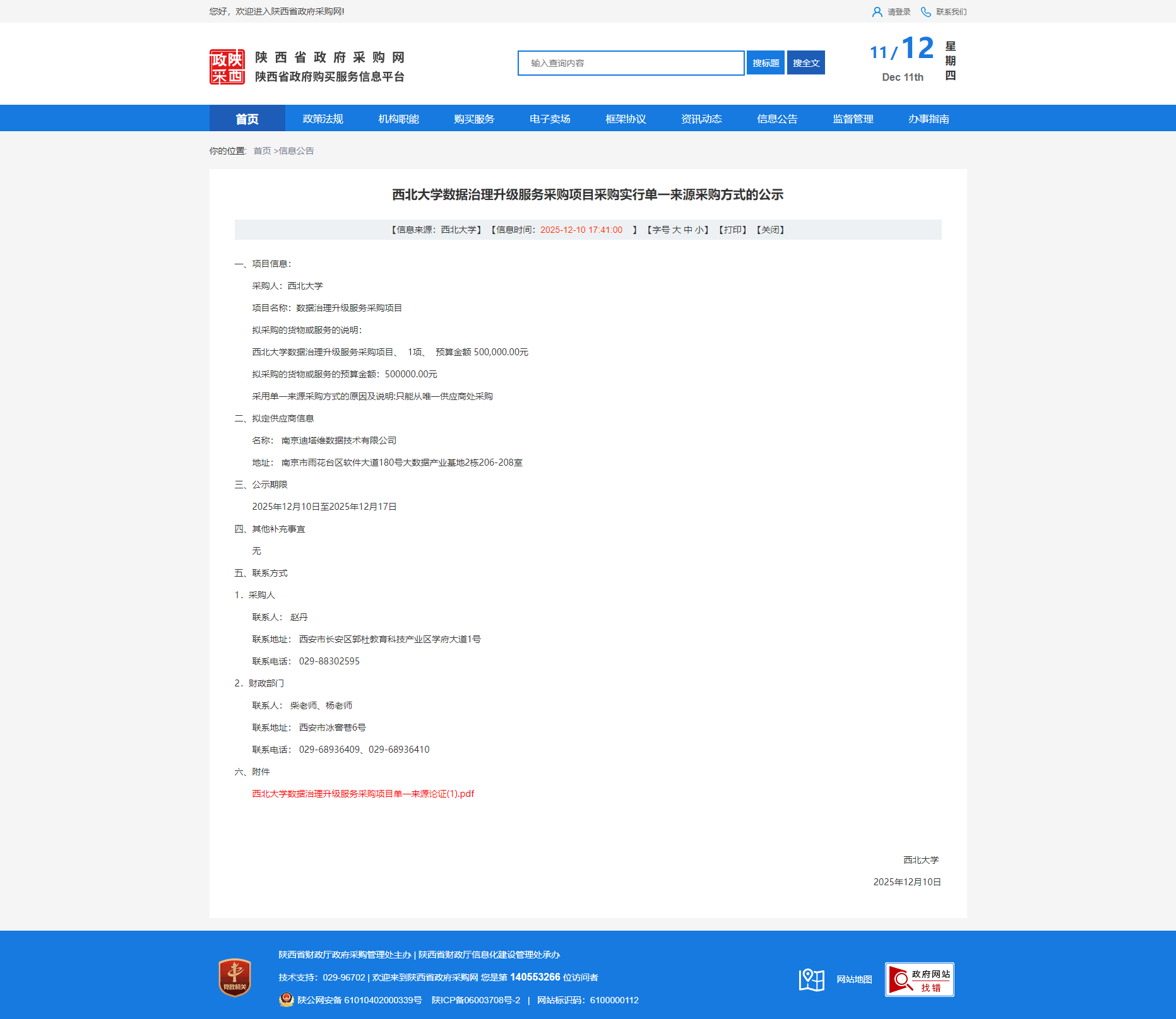 云博app官方在线入口数据治理升级服务采购项目采购实行单一来源采购方式的公示
