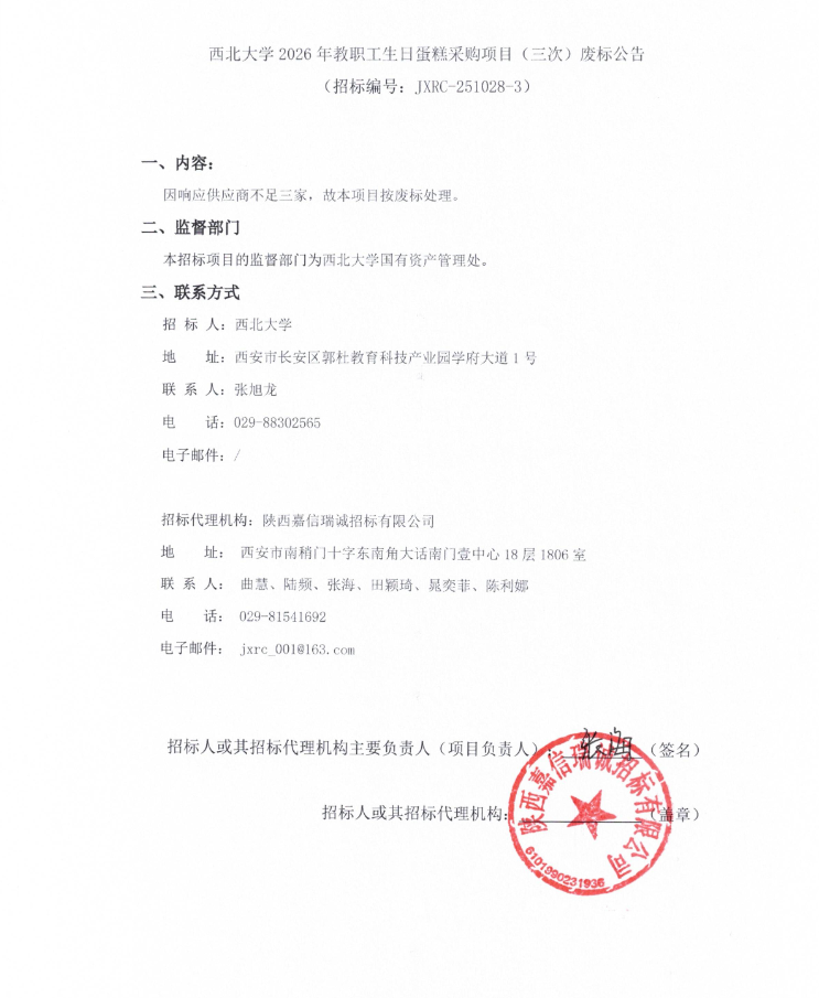 云博app官方在线入口2026年教职工生日蛋糕采购项目(三次)废标公告