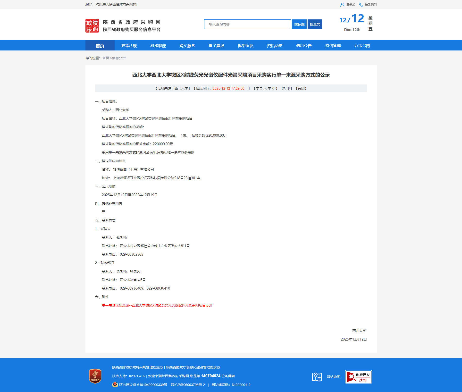 云博app官方在线入口微区X射线荧光光谱仪配件光管采购项目采购实行单一来源采购方式的公示
