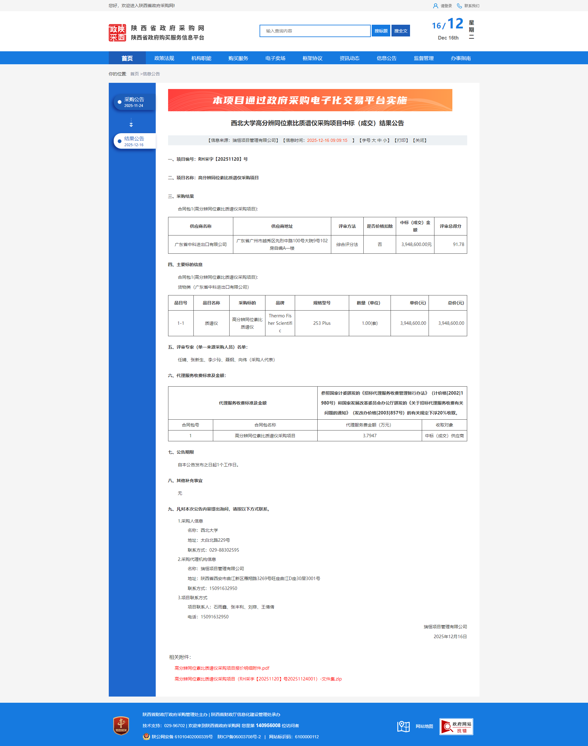 云博app官方在线入口高分辨同位素比质谱仪采购项目中标(成交)结果公告