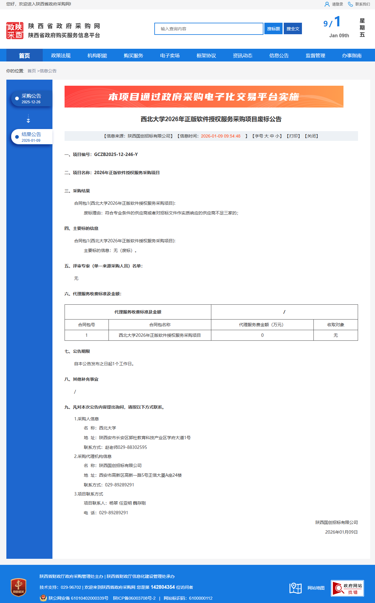 云博app官方在线入口2026年正版软件授权服务采购项目废标公告