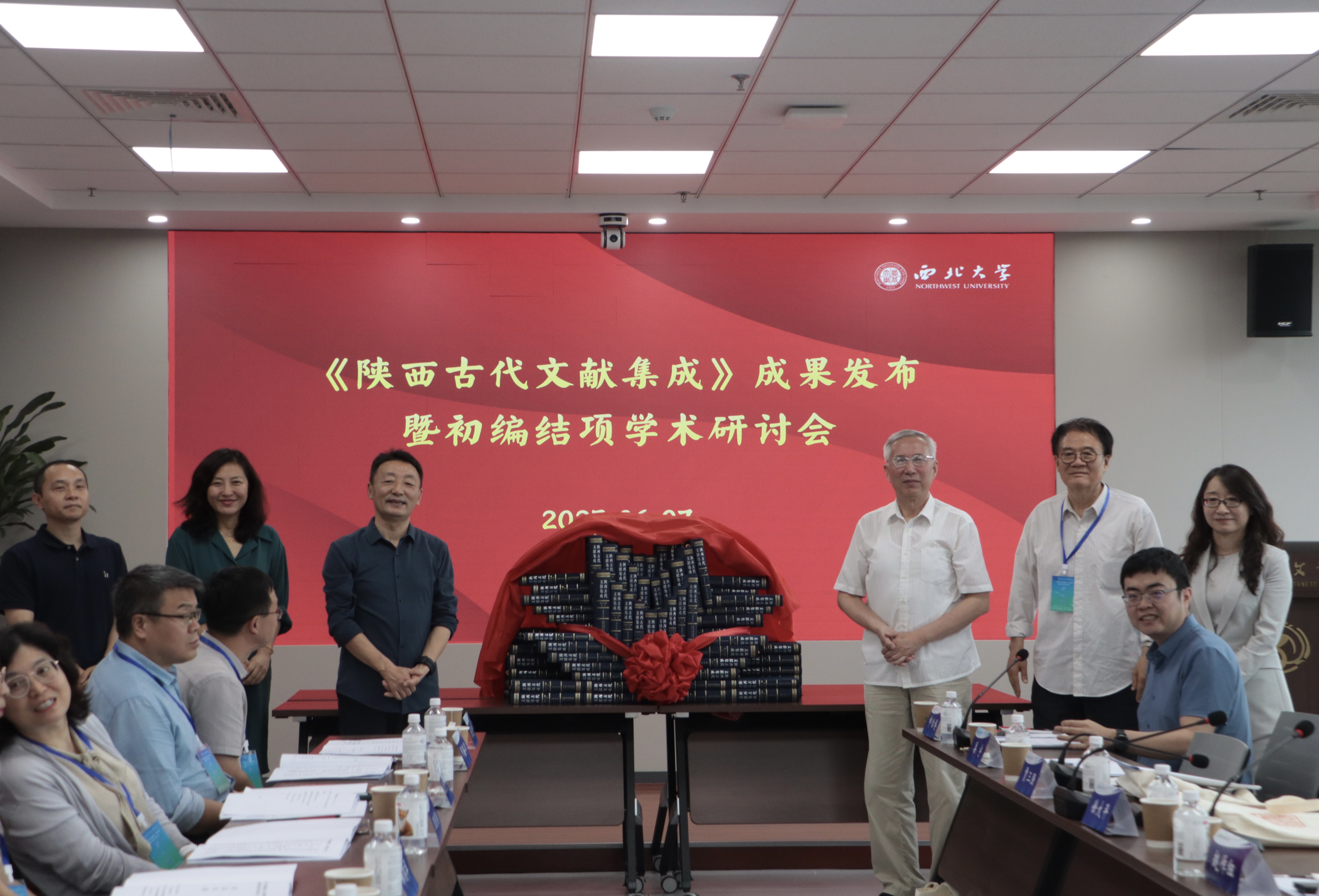 云博app官方在线入口党委副书记赵作纽、陕西省人民出版社副总编辑王亚嘉、项目鉴定专家徐大平、陕西省社会科学院古籍整理与研究所所长党斌、云博app官方在线入口文学院党委负责人及《陕西古代文献集成》项目主持人贾三强教授为《陕西古代文献集成》一期全书(1-50册)揭幕。