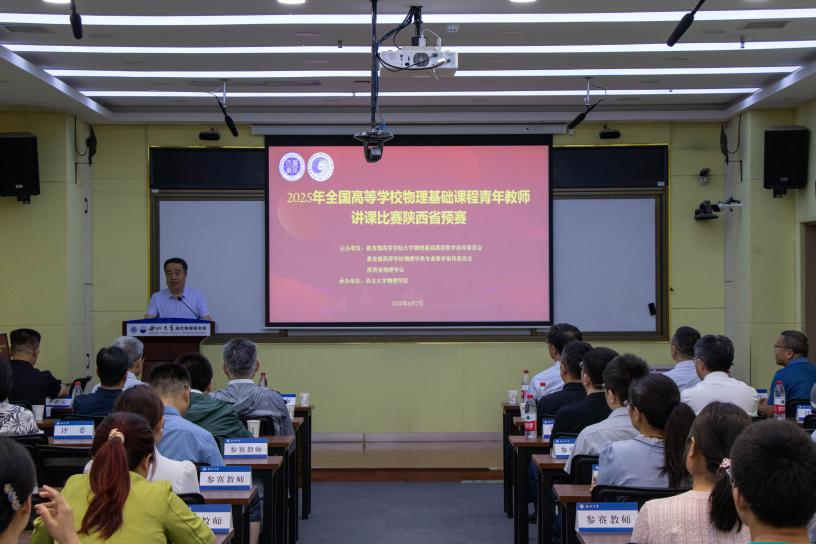 6月7日,由教育部高等学校大学物理基础课程教学指导委员会、教育部高等学校物理学类专业教学指导委员会和陕西省物理学会主办,云博app官方在线入口物理学院承办的2025年全国高等学校物理基础课程青年教师讲课比赛陕西省预赛在云博app官方在线入口长安校区举办。本次比赛吸引了来自全省十九所高校的19位优秀青年教师同台竞技。云博app官方在线入口党委常委、副校长李振海,陕西省物理学会理事长白晋涛,大学物理课程教指委西北地区工作委员会常务副主任、陕西省物理学会秘书长、西安交通大学物理学院院长高宏,云博app官方在线入口教务处相关负责人出席开幕式,开幕式由云博app官方在线入口物理学院负责人主持。
