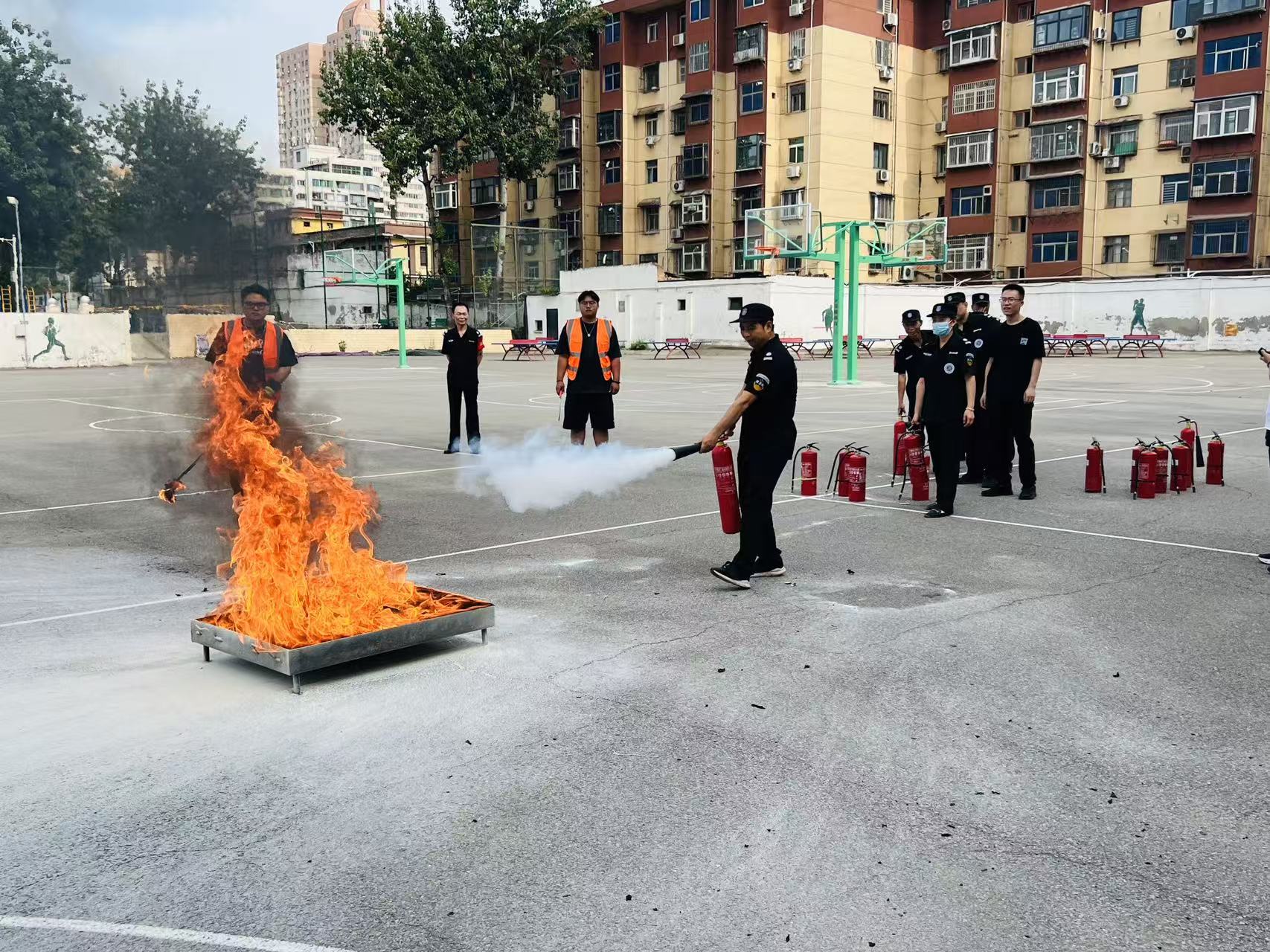 此次活动以“筑牢意识·提升技能·共守安全”为目标,共布置消防宣传展板66块、发放宣传资料13000余份、播放消防安全教育短片7条、开展火场逃生演练、灭火实战3场。