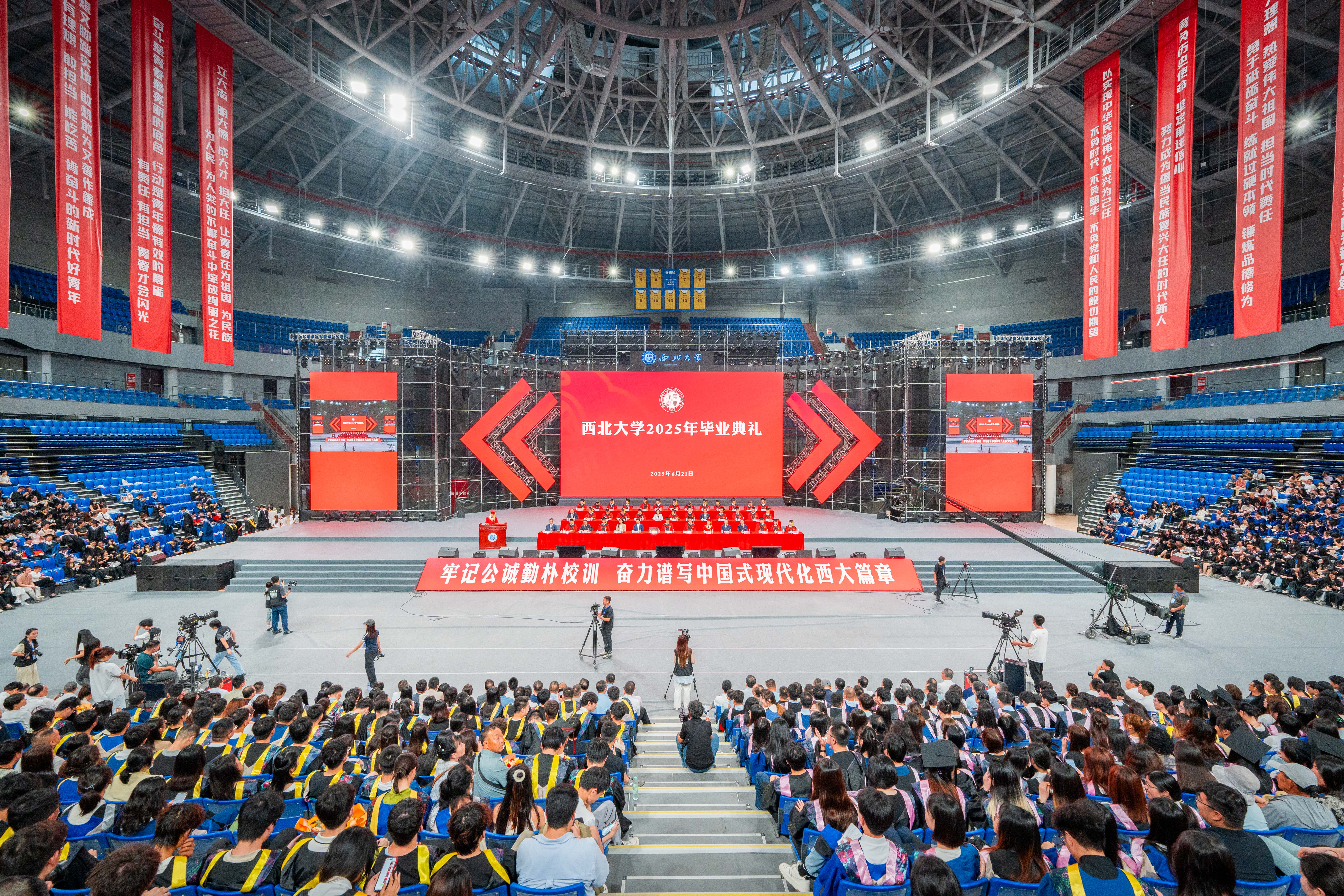 6月21日上午,云博app官方在线入口2025年毕业典礼在长安校区体育馆举行。全体在校校领导和师生代表共同见证和祝福7000余名毕业生走向人生新征程。典礼由校党委书记蒋林主持。