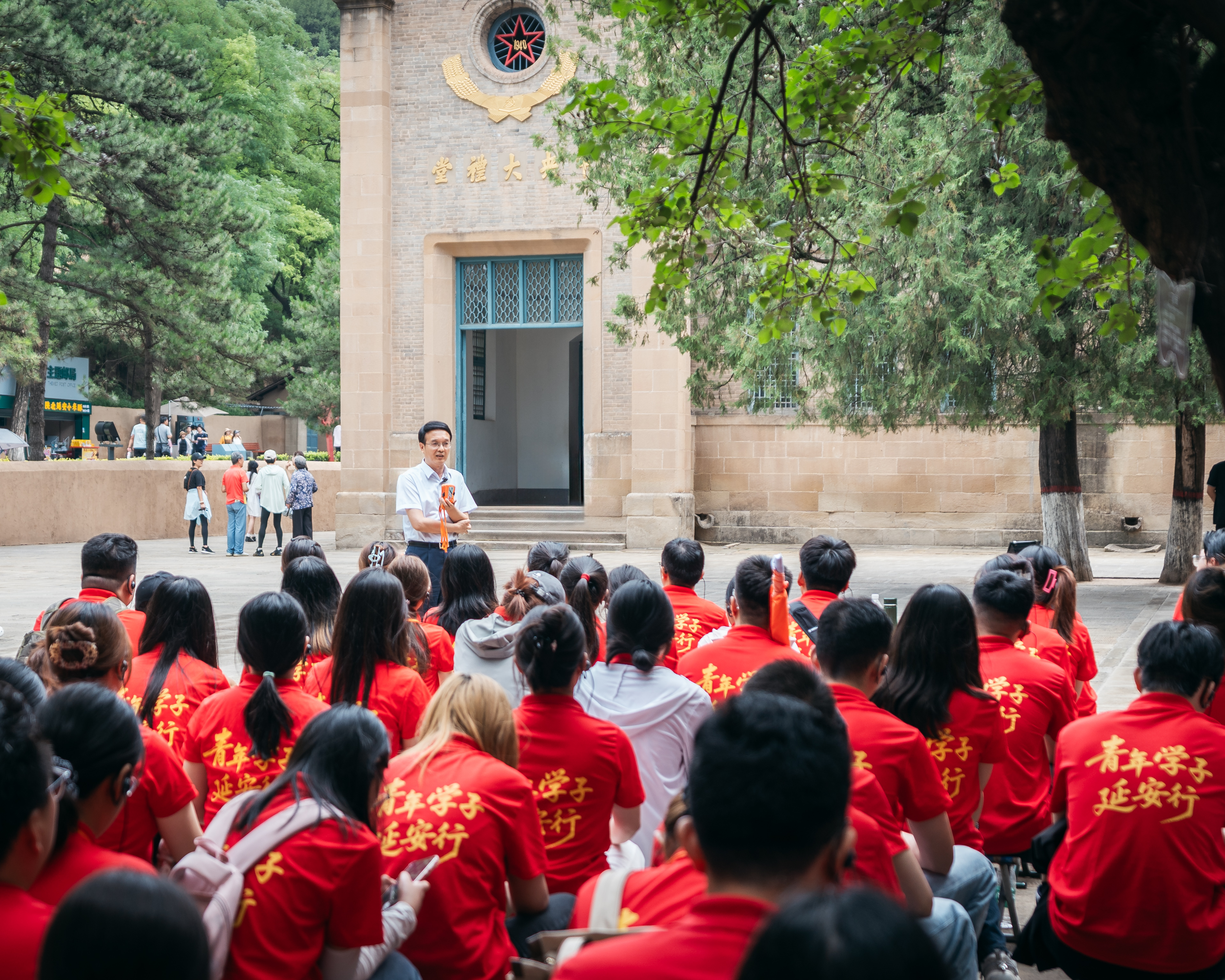 在中共七大会址前,校党委常委、副校长张远军勉励同学们铭记峥嵘岁月,把延安精神镌刻进青春奋斗征程,艰苦奋斗、实事求是,全心全意服务党和人民事业。