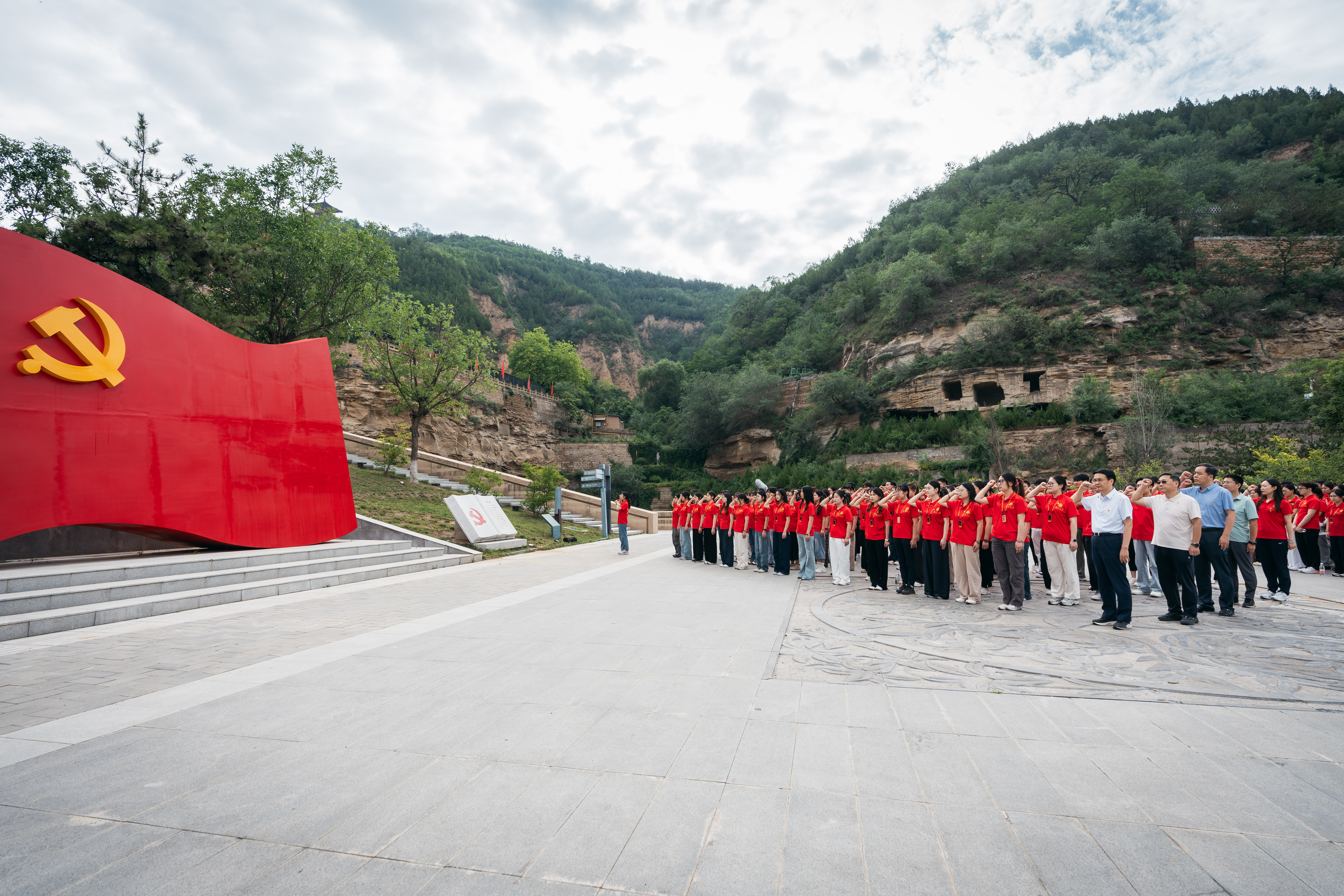 1937年1月,走过万里长征的中共中央进驻延安。延安宝塔山自此成为中国革命圣地的标志和象征。高山仰止,景行行止。晨光熹微中,研学团从延河边出发,沿着起伏的山道和台阶,徒步登上宝塔山。沿途星罗棋布、交相辉映的历史文物和革命文物,吸引大家不时驻足瞻仰。在宝塔脚下,大家面对鲜艳党旗,庄严举起右拳,重温入党誓词,让信仰穿越时空与革命前辈共振。又深情朗诵贺敬之的《回延安》,“几回回梦里回延安,双手搂定宝塔山。千声万声呼唤你——母亲延安就在这里!”,耳熟能详的诗句撞击心房,感染全场每个人。