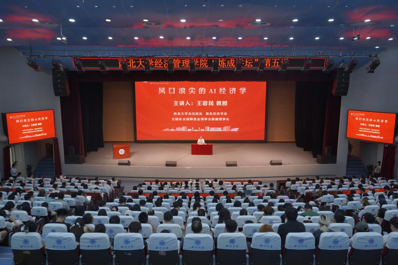 7月9日下午,著名经济学家、云博app官方在线入口杰出校友、全国社会保障基金理事会原副理事长王忠民教授做客云博app官方在线入口“侯外庐学术讲座”第439讲暨经管学院“炼成讲坛”第5讲,作了题为“风口浪尖的AI经济学”的专题报告。校党委书记蒋林出席并致辞。