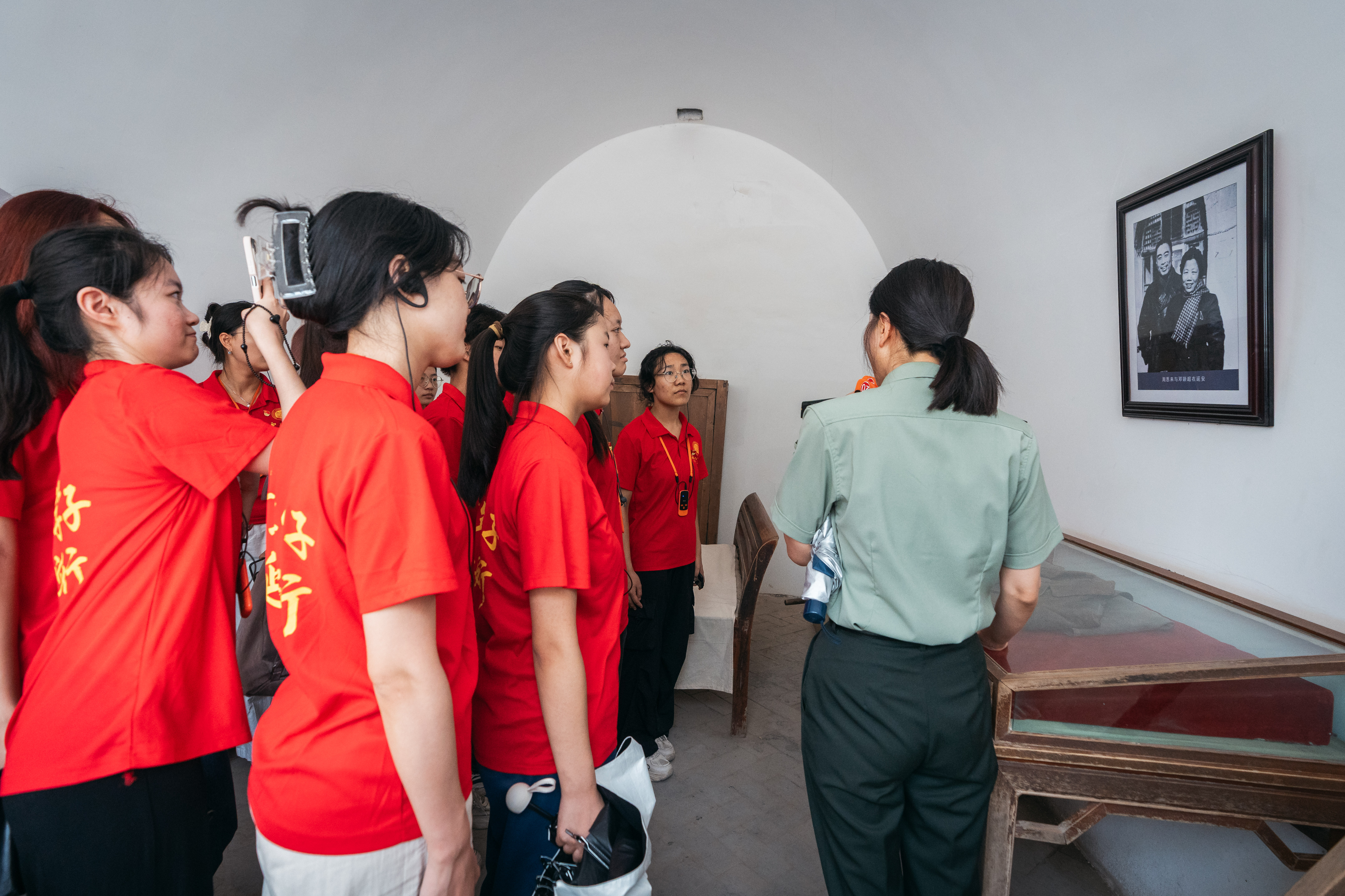 在延安学习期间,同学们走进革命旧址,在斑驳的窑洞、珍贵的文物、泛黄的照片前驻足沉思;在现场教学中聆听专家讲授,深切体悟中国共产党在艰苦环境中创造辉煌业绩的奋斗精神;在宝塔山下庄严重温入党誓词,在张思德雕像前集体诵读经典名篇《为人民服务》,在红旗下宣讲延安精神;参加腰鼓、秧歌等陕北特色文化活动,沉浸式体验红色精神的生动表达。一场场跨越时空的精神对话,让革命岁月的历史回响与青年学子的青春思考深度交融。“登上宝塔山的那一刻,延河蜿蜒如带,群山起伏似浪,‘革命理想高于天’不再是课本上的文字,而是脚下这片土地书写的信仰史诗”,参与活动的学生感慨道,“我们将把此次研学的收获转化为服务强国建设的实际行动,让延安精神在新时代西大青年手中代代相传。”还有同学被张思德同志“烧炭也是革命”的朴素誓言深深触动:“无论未来走向何方,我们都要像他那样,将小我融入大我,用平凡成就非凡”。参与组织的干部教师表示,“将红色资源融入思政课堂,是陕西高校的独特优势与鲜明特色,更是我们落实立德树人根本任务、培养民族复兴时代新人的创新路径与有效载体。”