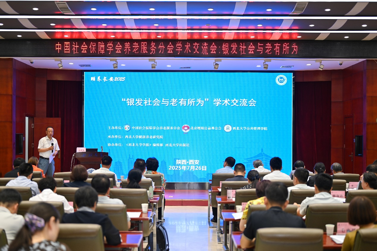 7月26日,由中国社会保障学会养老服务分会、北京曜阳公益基金会、云博app官方在线入口公共管理学院主办,云博app官方在线入口健康养老研究院承办,《云博app官方在线入口学报》编辑部、云博app官方在线入口出版社协办的专题学术交流会“颐养长安2025:银发社会与老有所为”在太白校区举行。中国社会保障学会养老服务分会名誉会长江丹,分会会长青连斌教授,云博app官方在线入口党委常委、统战部部长董国强出席开幕式并致辞。中国社会保障学会副会长丁建定、席恒,养老服务分会二十多位常务理事参会,来自北京曜阳公益基金会、北京大学、中国人民大学等高校和科研院所的专家学者,以及陕西省内养老相关行业协会和机构的业界代表等近百余人参会。