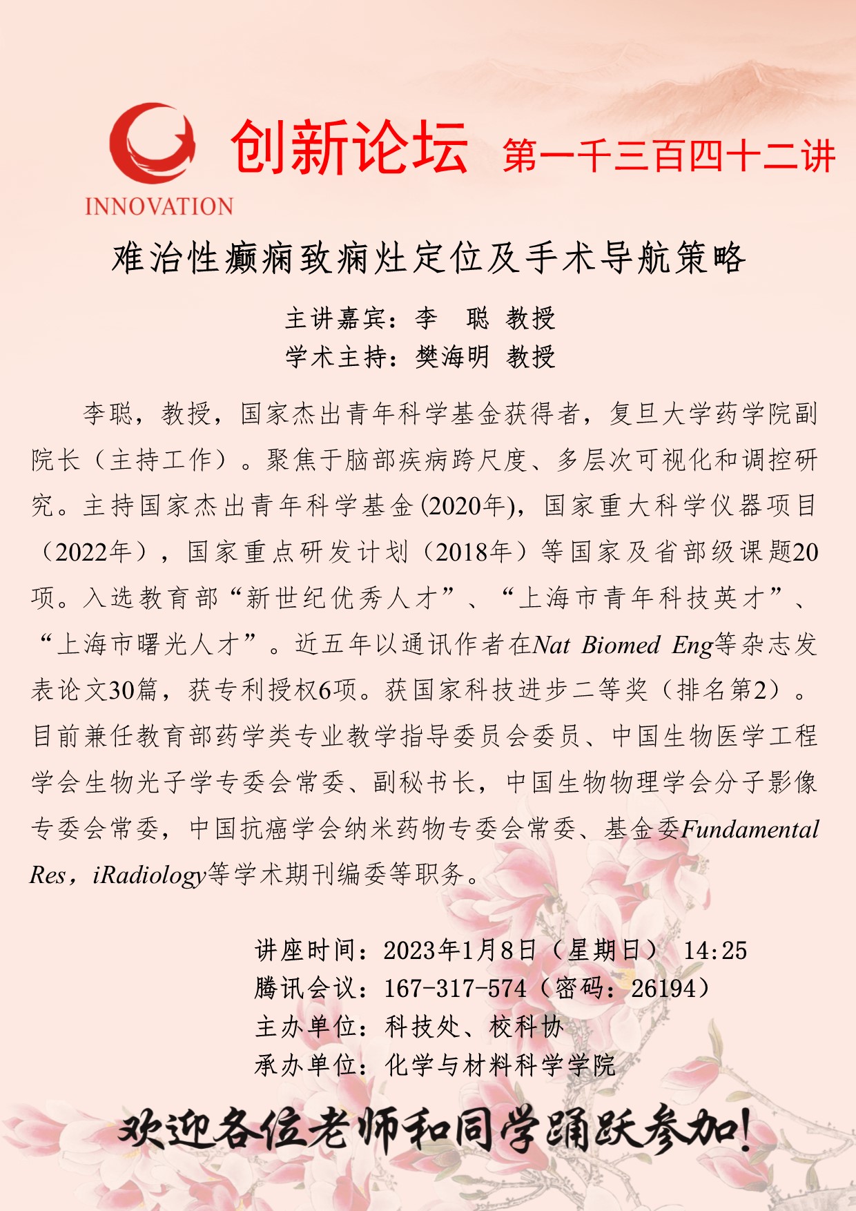 李聪 教授 云博app官方在线入口创新论坛第一千三百四十二讲:难治性癫痫致痫灶定位及手术导航策略 讲座时间 2023年1月8日(星期日) 14:25 讲座地点 腾讯会议:167-317-574 讲座人介绍 李聪 教授 讲座内容