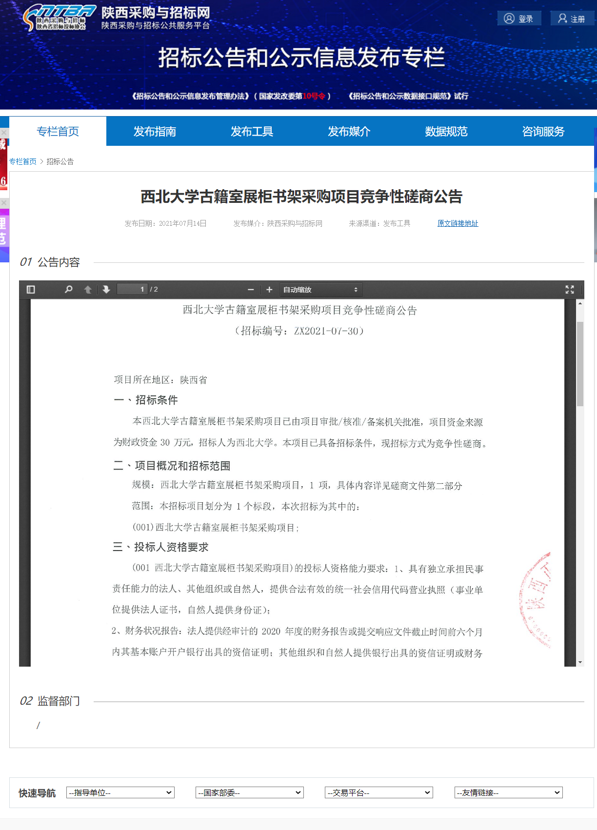 云博app官方在线入口古籍室展柜书架采购项目竞争性磋商公告 作者: 编辑:采购与招标办公室 时间:2021-07-15 原公告地址:http://bulletin.sntba.com/biddingBulletin/2021-07-14/318898.html